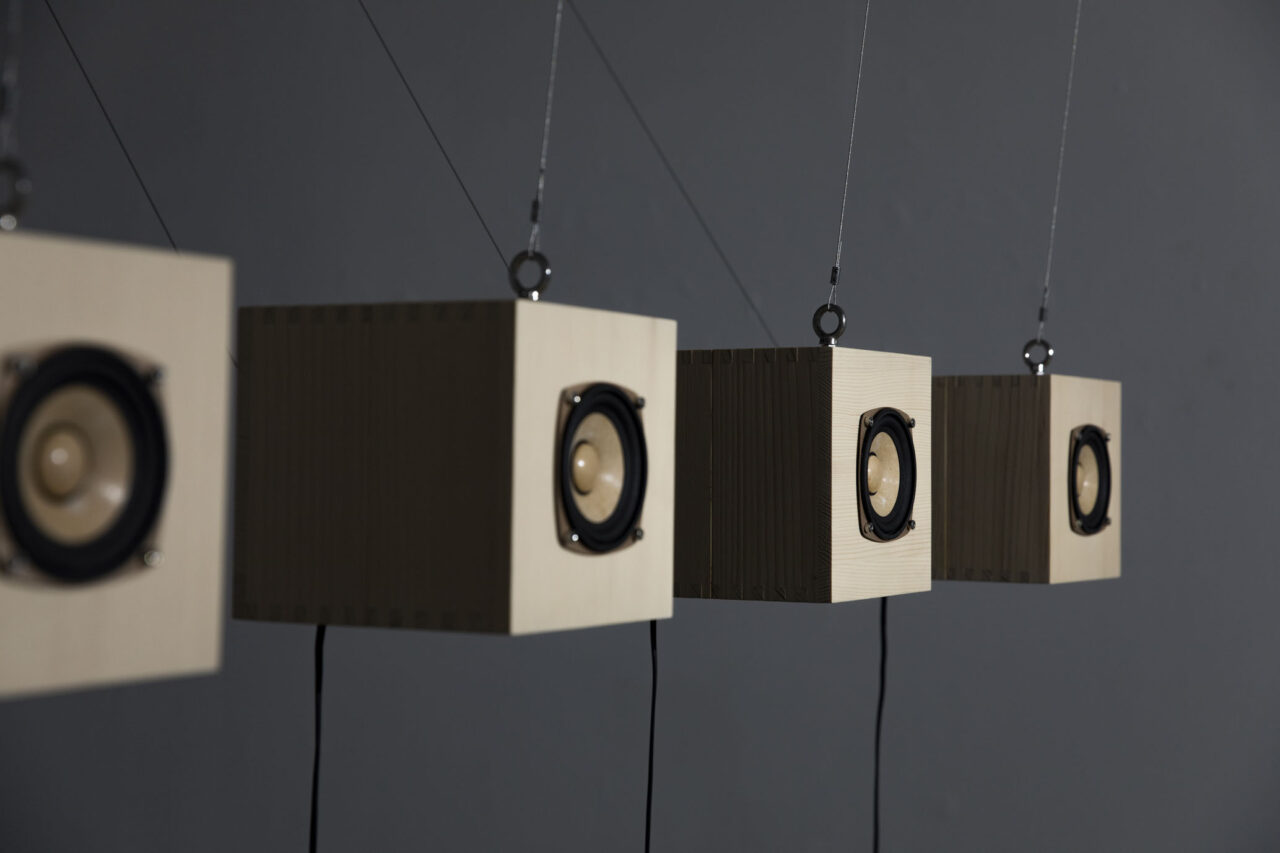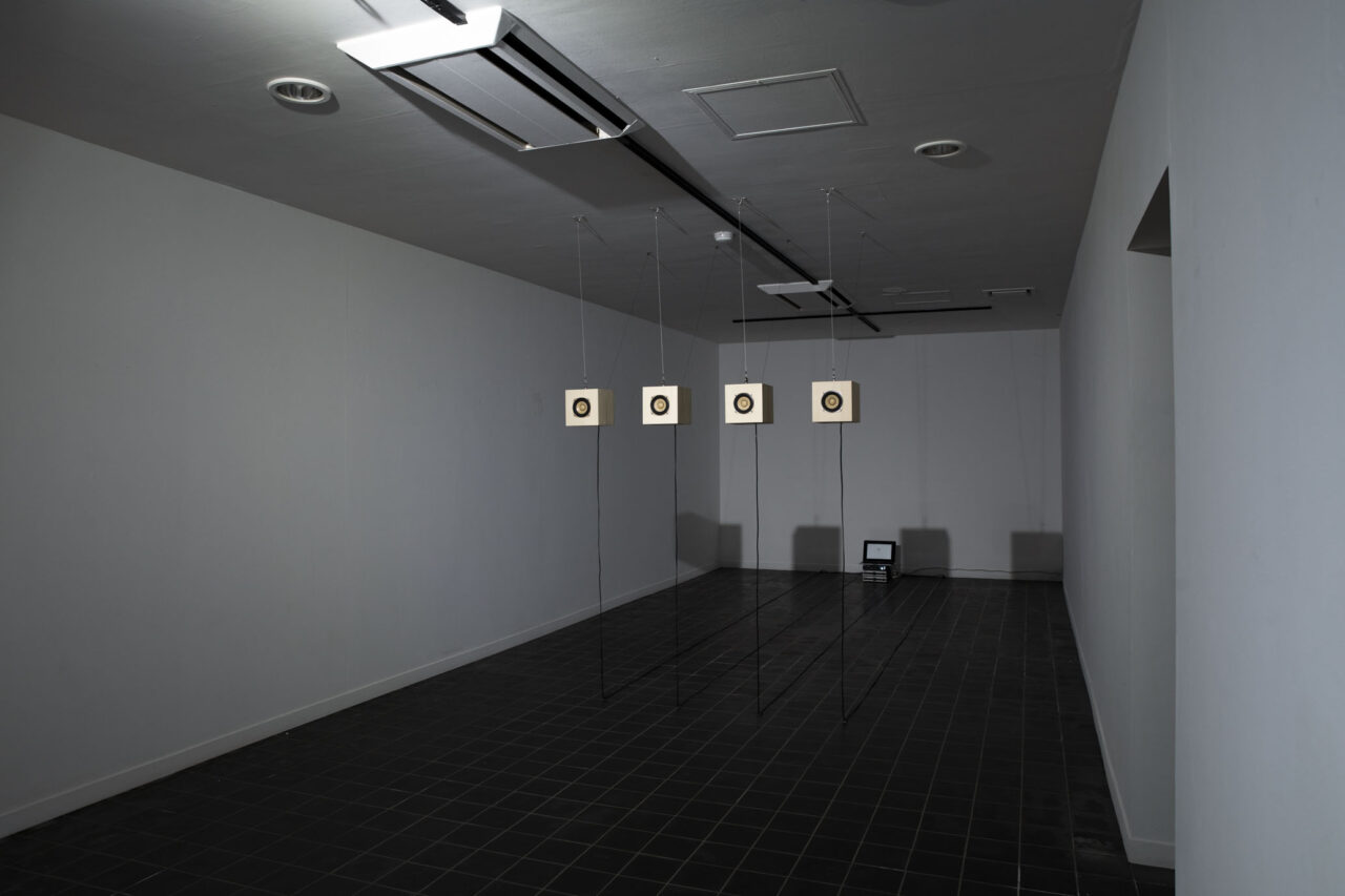 本展覧会タイトル「無いに聞く」は英題 “Trusted Silence” に由来し、“沈黙に耳を澄ます”という姿勢を示しています。音が供給されるのをただ待つのではなく、音が鳴る直前の緊張や、鳴っていない状態に潜む気配を信頼し受け入れること。細井はその意識を日常の中で保つための“装置”としてサウンドオブジェクトを制作してきました。素材には鈴や時計、金属板など、誰もが知る日常的なものを用いています。なかでも鈴は、鳴っていなくても音を想起させる世界共通の存在であり、匿名性を保ったまま音に実体と場所を与えることができる特別な素材です。細井は「音が立ち上がる寸前の静寂を聞きたい。鳴るのは今ではないことを受け入れ、それ以上を求めず、頭の中で補完する。それで満足できる人になりたい」と語ります。その探求は単なるサウンドアートの枠を超えて「ないこと」や「聞こえないこと」の価値を表現し、「時間認識という錯覚」への問いかけをも内包しています。作品はオブジェクトとして時間を伴いながら、鑑賞者に実時間とは異なる体験を促します。